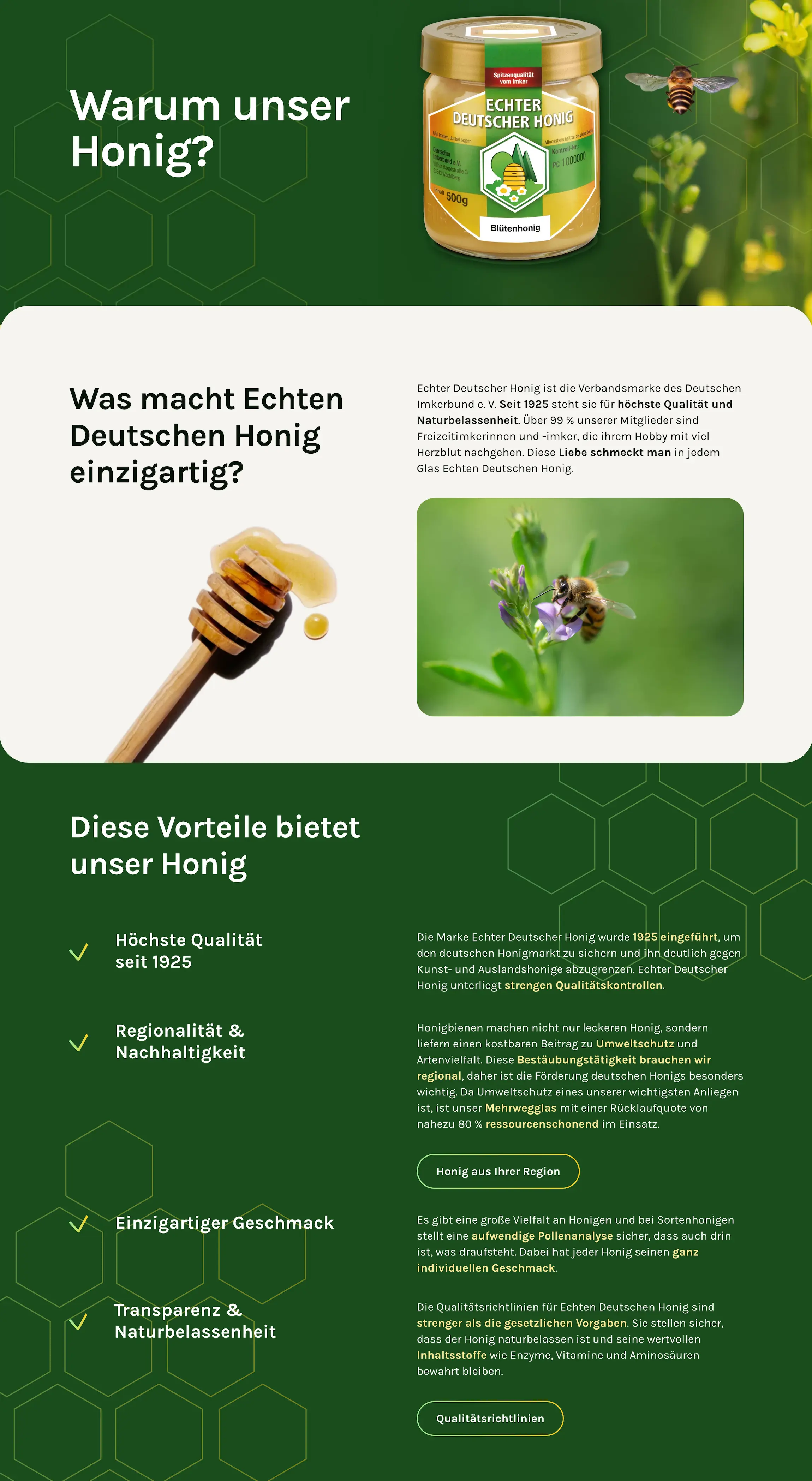 Die Informationsarchitektur wurde von Grund auf nutzerfreundlich gestaltet. Das moderne Corporate-Design-Manual interpretiert den Imkerbund und die Marke „Echter Deutscher Honig“ zeitgemäß.