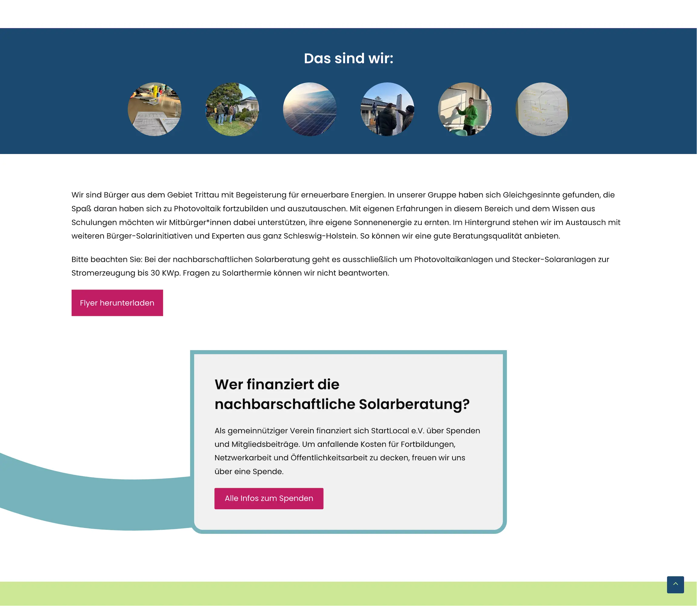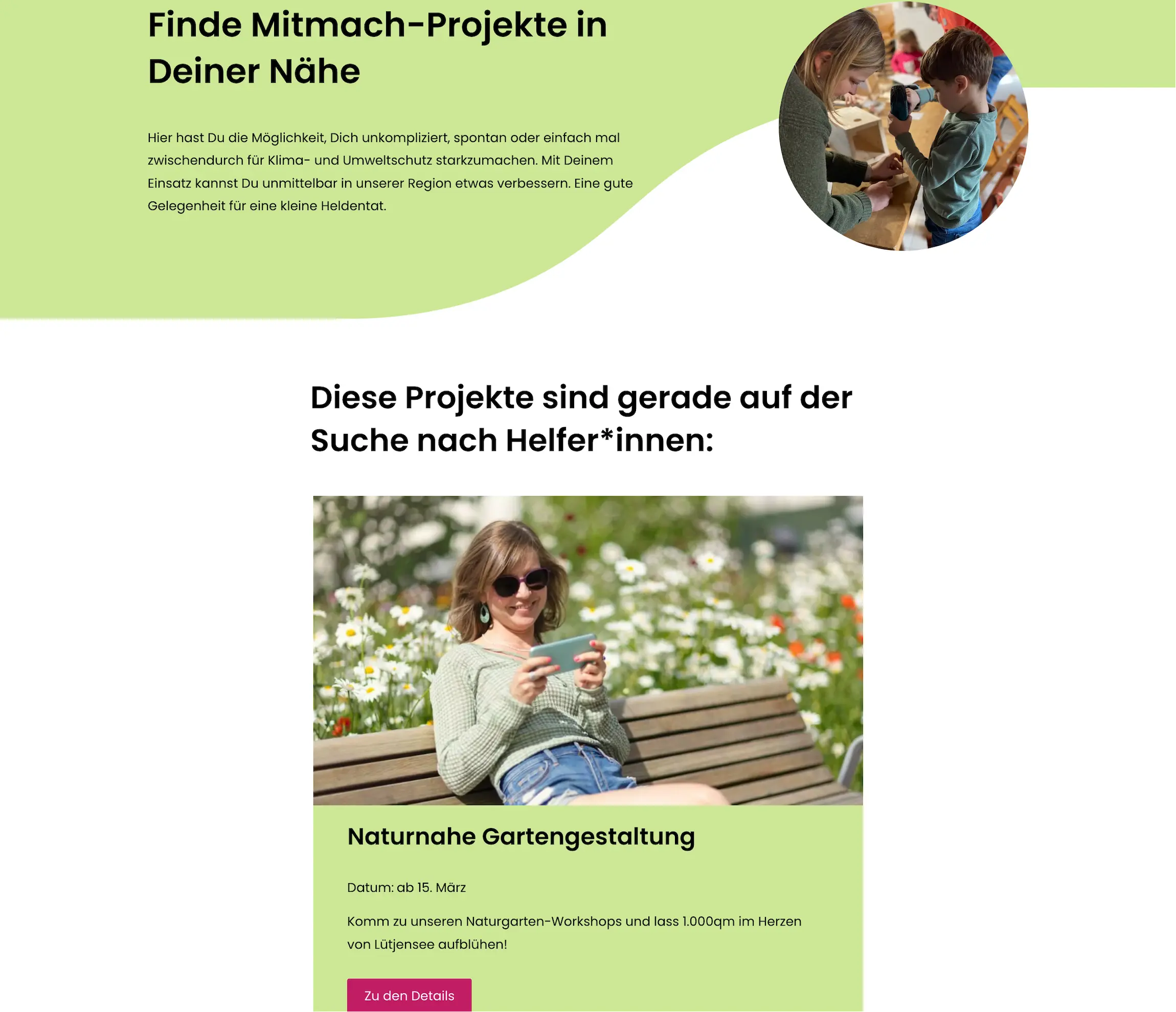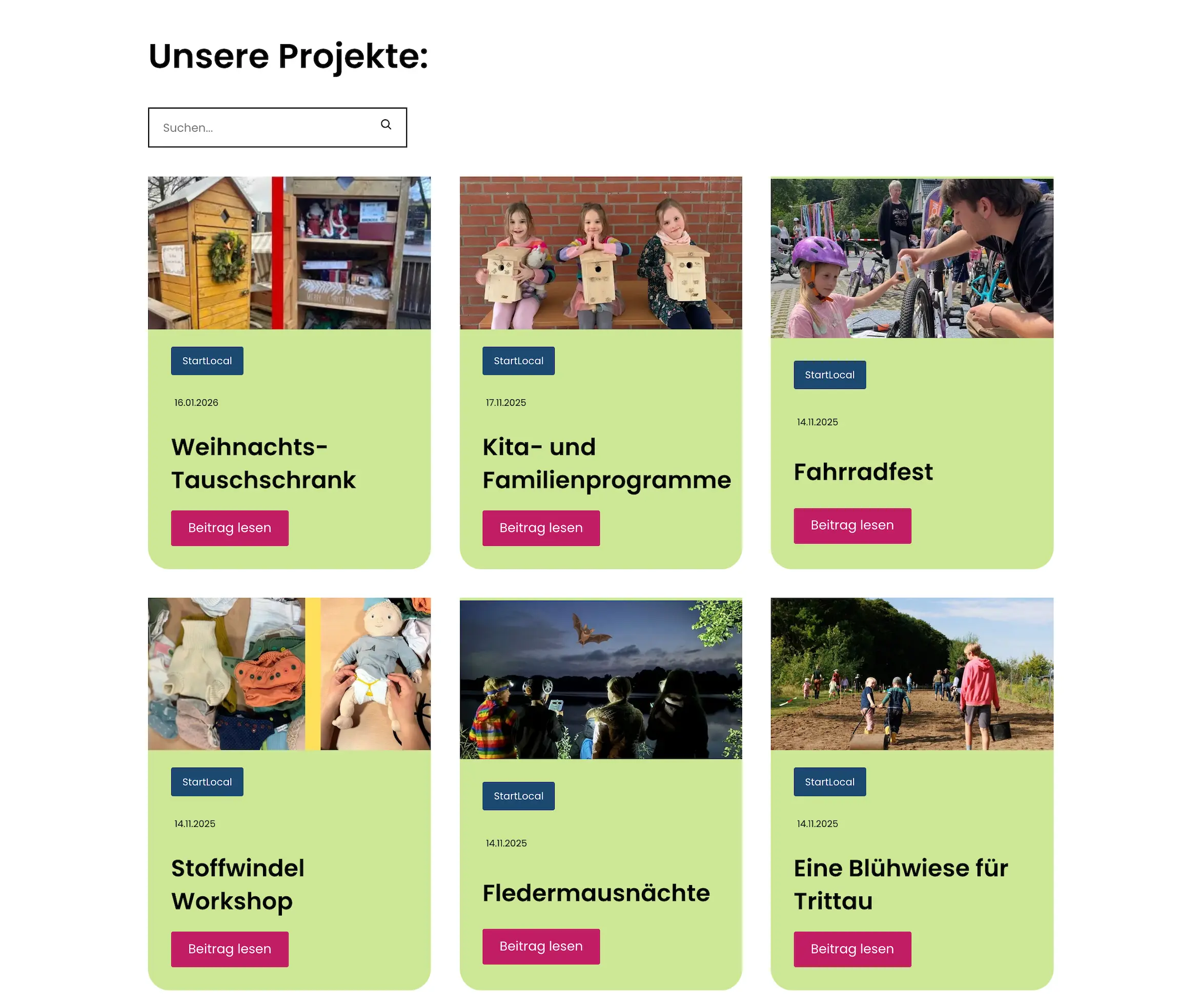Gemeinsam haben wir eine Online-Plattform erstellt, die User darüber informiert, welche regionalen Projekte für die Freiwilligenarbeit offen sind. Gleichzeitig gibt sie Menschen die Möglichkeit, über den Kontakt mit dem Verein StartLocal neue nachhaltige Projekte ins Leben zu rufen. Sach- und Geldspenden werden ebenfalls über die Website vermittelt.